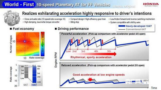 據(jù)悉,本田這款全新的10速自動(dòng)變速箱其特性相比6速自動(dòng)變速箱有三個(gè)特性,第一,更省油,取消了平行軸結(jié)構(gòu)改為行星齒輪,各擋位齒輪的落差比縮小,并且擋位增加,換擋時(shí)將更為綿密,因此,油耗提升了6%。第二,換擋更快速,換擋反應(yīng)與回饋力道提升30%,而超車加速時(shí)反應(yīng)速度也快了14%。最后,變速箱小體積化,在本田乘客空間最大化、機(jī)械空間最小化宗旨下,10速自動(dòng)變速箱也發(fā)揚(yáng)這樣的理念,本田設(shè)計(jì)師重新設(shè)計(jì)了變速箱齒輪與形狀,10速自動(dòng)變速箱的體積沒有過度增大,反而與6速自動(dòng)變速箱體積相差不多。這臺(tái)10速自動(dòng)變速箱目前的量產(chǎn)時(shí)間還沒有定,不過未來將會(huì)在中大型轎車上成為標(biāo)配。