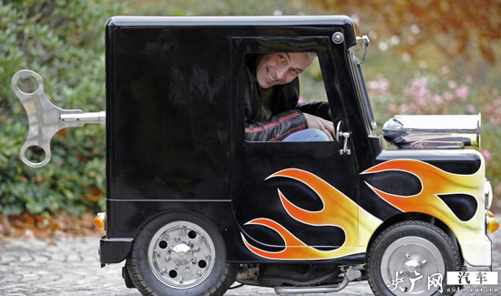 英國(guó)設(shè)計(jì)師佩里·沃特金斯組裝出世界上體積最小的汽車(chē)并獲得牌照,汽車(chē)最高時(shí)速可達(dá)60公里。他組裝的發(fā)條迷你汽車(chē)高41英寸(約合1.04米),長(zhǎng)51英寸(約合1.29米),寬26英寸(約合66.04厘米)。