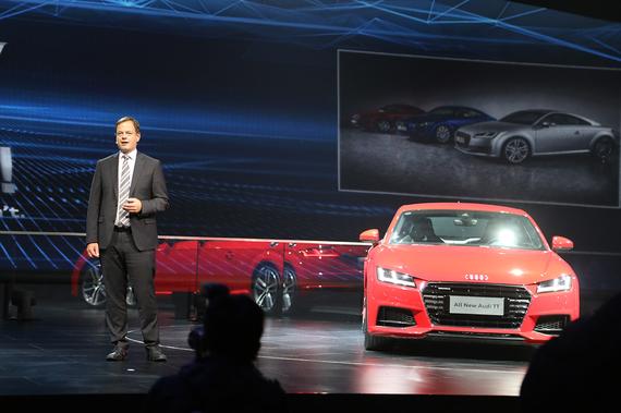2014年日內瓦車展,全新一代奧迪TT和TTS正式發(fā)布,新車基于MQB平臺進行打造,也是奧迪全新設計理念下推出的首款車型。
