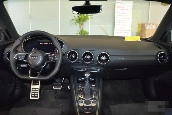 內飾方面,全新奧迪TT的內飾讓人眼前一亮,整體設計簡潔而不失時尚科技感。其中新車的儀表盤采用12.3英寸的LCD液晶顯示屏設計,并兼容了MMI交互系統(tǒng)的顯示功能,包括地圖、導航、車載電視等。中控臺整體設計非常簡潔,圓形出風口繼承了空調開關、溫度調節(jié)、風速、風向和座椅加熱等功能。座椅方面,全新TT提供三種內飾顏色供消費者選擇,包括黑色外、巖石灰和帕洛米諾棕色。S Line車型可選擇一種新顏色——轉子灰?臻g上雖為四座但后排空間表現(xiàn)堪憂,不僅腿部空間較為緊張,而且由于受到車頂造型的影響,頭部空間狹窄也在意料之中。