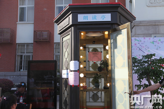 下午四點(diǎn)之后,朗讀亭成了熊孩子的陣地,很多家長(zhǎng)帶著孩子來參加這次活動(dòng)。一位小學(xué)生模樣的男孩在母親的陪同下練習(xí)即將朗讀的文章。此次他選擇朗讀的文章是《長(zhǎng)大后我要成為一名軍人》,小男孩十分雀躍的告訴記者,我以后想成為一名軍人,所以我選擇了這篇文章,我真是特別特別喜歡軍人。