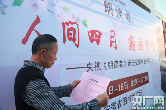 此次朗讀者在安徽省圖書館的活動(dòng)時(shí)間是4月12-18日每天9:30-17:30。很多由于時(shí)間原因而未能進(jìn)入朗讀亭的人徘徊在朗讀亭周圍而不肯離去?瓷现挥40歲左右而實(shí)際年齡已經(jīng)60多歲的張阿姨一臉遺憾的站在朗讀亭外喃喃自語(yǔ)道,今天來晚了呦,明天我要早點(diǎn)來排隊(duì)。
