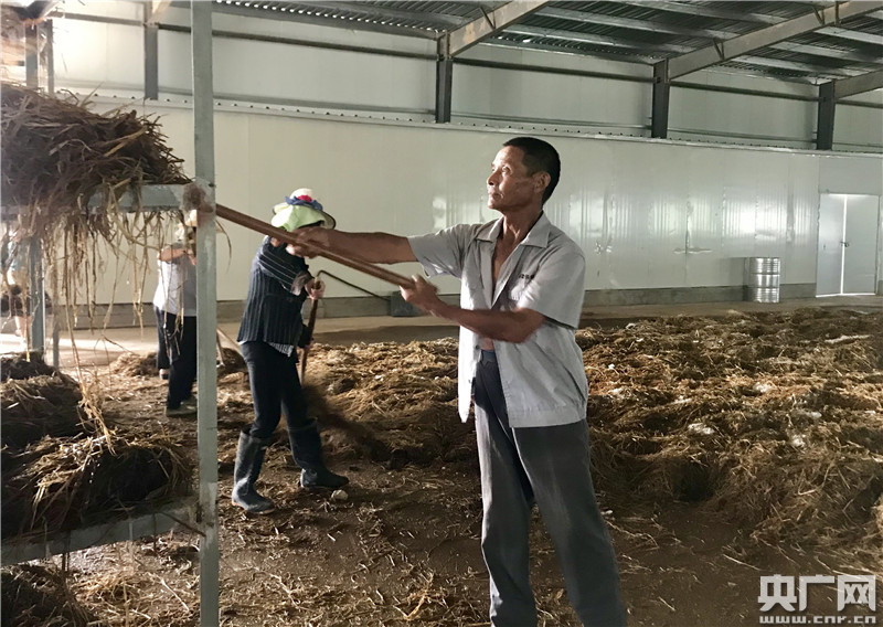 記者見到68歲的村民沈二陽時,他正在車間收拾發(fā)酵的秸稈。“在這里做雜工,每個月能收入2000多元!本C合體開展的就業(yè)扶貧為32戶貧困戶提供了崗位。固定用工3名,每戶年收入在2萬元以上,臨時用工29名,每人每天80-100元,年收入也均在3000元以上。