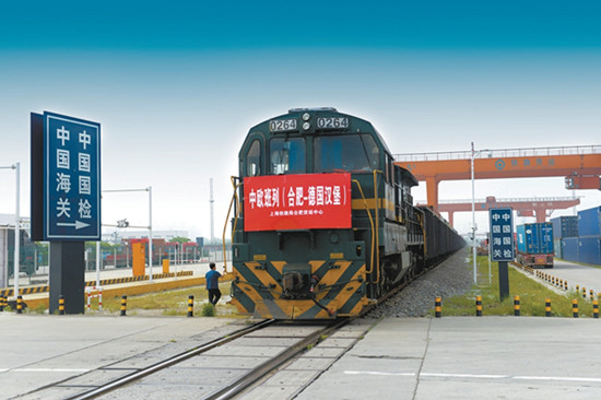 6月26日,合肥北站物流基地,滿載著皖產機械設備、家電等貨物的中歐班列整裝待發(fā)。當日,合肥迎來了中歐班列開通3周年。 2014年6月26日,我省首列中歐班列開通,在“一帶一路”強勁發(fā)展環(huán)境下,3年來中歐班列累計發(fā)送62列,共計2909車5818只標準集裝箱;中亞班列累計發(fā)送63列,2961車5922只標準集裝箱。目前,合肥市已被國家發(fā)改委列為中歐班列內陸主要貨源地節(jié)點城市和主要鐵路樞紐城市,成為“十三五”中歐國際班列核心區(qū)域。