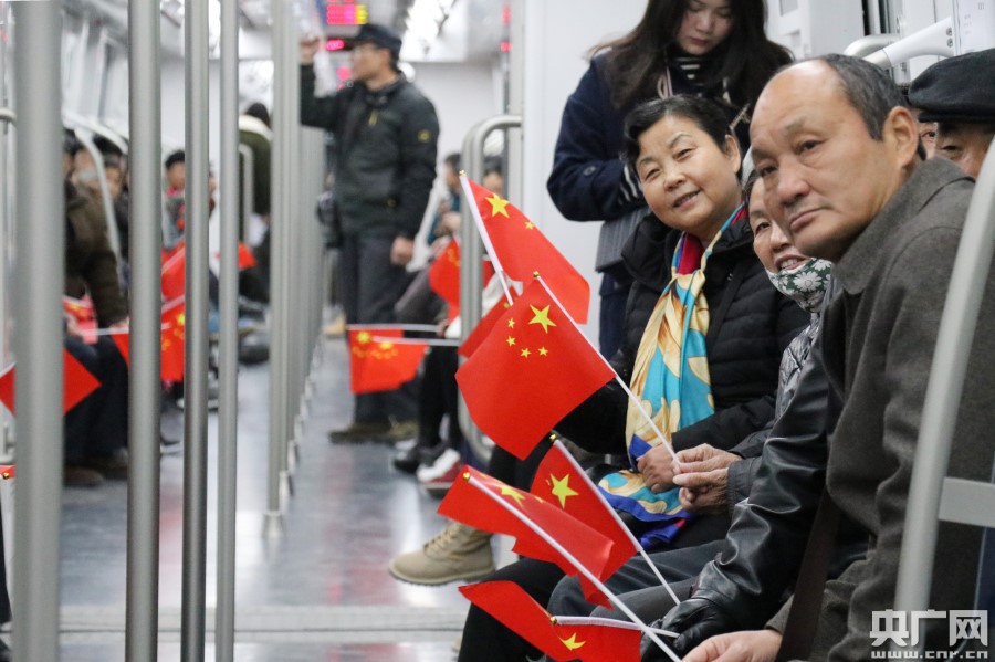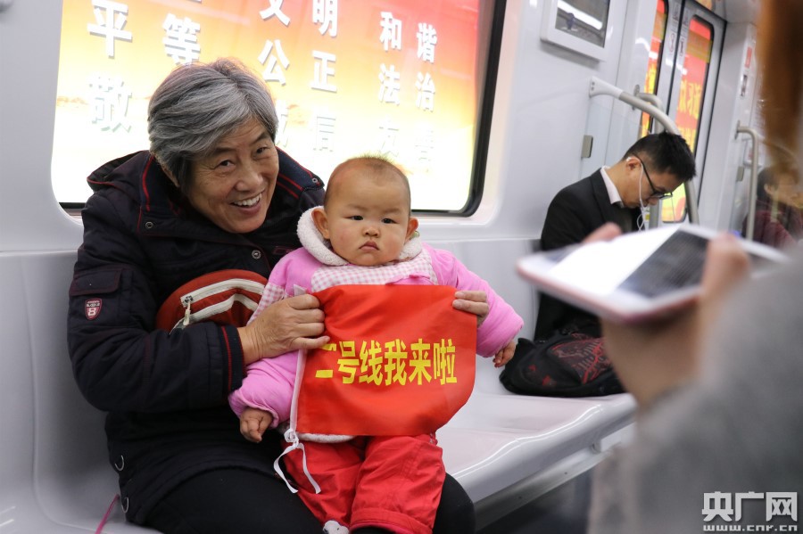 央廣網(wǎng)合肥12月6日消息(記者徐鵬)12月6日,是合肥地鐵2號線百萬市民大型試乘活動(dòng)的首日。如果說合肥地鐵1號線開創(chuàng)了這座城的“地鐵時(shí)代”,那么2號線則預(yù)示著合肥進(jìn)入“十字換乘時(shí)代”,地鐵不再是“一條線”,而是形成一張網(wǎng)。因此,不少合肥市民大早上便來到地鐵站,第一時(shí)間體驗(yàn)試乘體驗(yàn)。在一趟開往南崗方向的列車上,來自合肥七里站街道的120余名年過七旬的老人手持國旗,興奮激動(dòng)地體驗(yàn)。 -