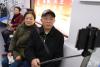 兩位老人舉起自拍桿記錄下試乘瞬間。 -