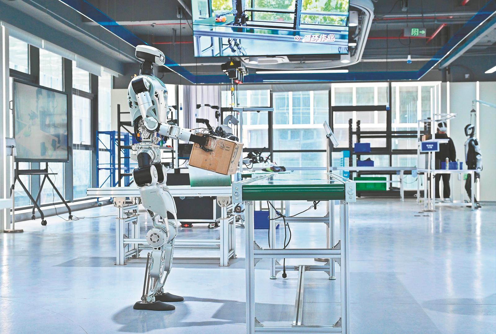 12月12日,合肥市具身智能機(jī)器人數(shù)據(jù)采集預(yù)訓(xùn)練場,人形機(jī)器人在進(jìn)行物流搬運(yùn)的相關(guān)訓(xùn)練。物流搬運(yùn)、零件分揀、服務(wù)講解……形態(tài)各異的人形機(jī)器人在這所“特訓(xùn)學(xué)!崩锊粩鄬W(xué)習(xí)進(jìn)步。(程兆 攝)