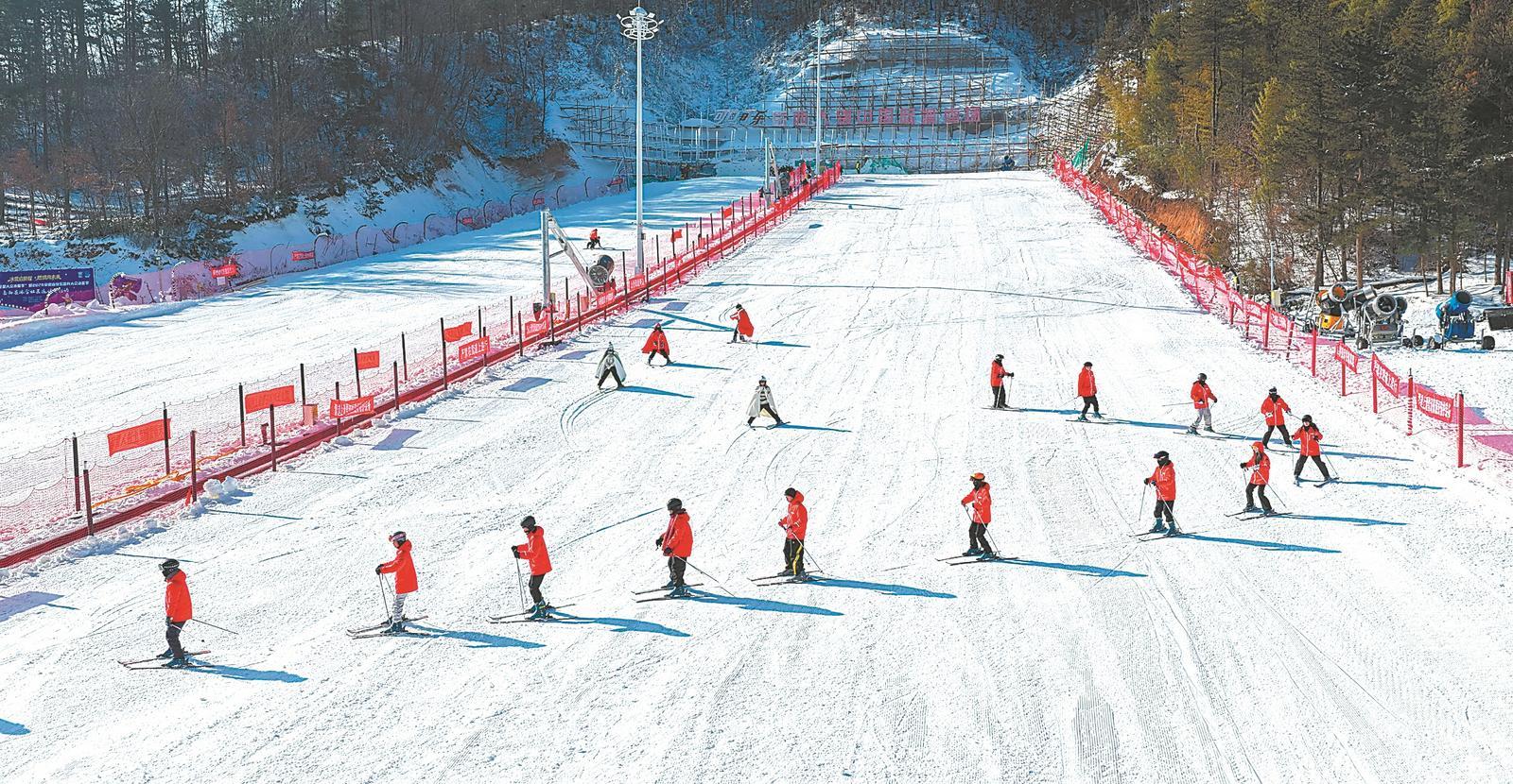 1月24日,冰雪運動愛好者和游客在岳西大別山國際滑雪場,開展滑雪、玩雪、賞雪和冰雪趣味運動會等活動,為冬日的大別山區(qū)注入了熾熱活力。(王先國 攝)