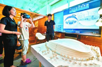 在實(shí)驗(yàn)劇場(chǎng),觀眾欣賞了一場(chǎng)全息芭蕾舞劇,真人與虛擬現(xiàn)實(shí)融為一體,虛實(shí)難辨,美輪美奐。最熱鬧的當(dāng)屬能夠和高科技設(shè)備交互體驗(yàn)的展位,改革開(kāi)放AR拍照合影、VR動(dòng)感單車、體感共舞系統(tǒng)、滑雪演練平臺(tái)等展位前,觀眾們排起了隊(duì)紛紛來(lái)嘗鮮!皝(lái)自北京國(guó)企的這些現(xiàn)代前沿顯示技術(shù)太驚艷了!”一位來(lái)自埃及的留學(xué)生不時(shí)點(diǎn)頭稱贊。