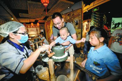 昨天,航天科工二院30余位職工和子女來(lái)到北京市腐乳科普館,了解“王致和”腐乳的歷史趣聞、腐乳的分類、加工工藝等科普知識(shí)。本報(bào)記者 潘之望攝