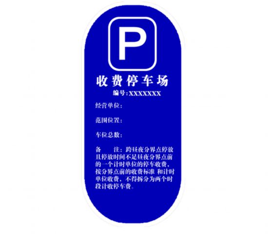 收費(fèi)停車(chē)場(chǎng)明碼標(biāo)價(jià)牌參考式樣正面