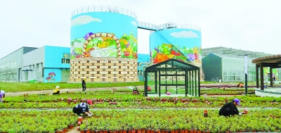 百蔬園外還有一處亮眼的景觀,兩個以蔬菜籃為設計元素的巨型彩繪能源罐高聳矗立。這兩個為溫室大棚提供能源的能源罐,經過中央美院專家團隊的藝術設計和現(xiàn)場手繪后,呈現(xiàn)出藍天白云下蔬菜籃子的幾何圖案,充分體現(xiàn)了百蔬園的藝術特性。