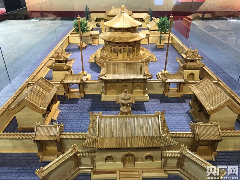 展覽展出了國家圖書館珍藏的清晚期《南苑全圖》和清同治年間的《鳳泉涼水河圖》,浙江省博物館珍藏的康熙年間《京杭道里圖》。《南苑全圖》具象展示了南海子鼎盛時期的地域四至、規(guī)模構成,《鳳泉涼水河圖》形象說明了南海子的濕地水系與運河的關系,《京杭道里圖》充分說明了歷史上南海子與北京城、永定河、運河之間的關系。值得一提的是,本次展出的手工藝術微雕模型“德壽寺”、“舊衙門行宮”、“南紅門行宮”,“元靈宮”和“新衙門行宮”古建微雕模型具有較高的觀賞價值,配合清代200多年間主持皇家建筑設計的雷姓世家的“樣式雷”建筑圖,這些精美的手工藝品生動再現(xiàn)了南海子的古苑盛景。