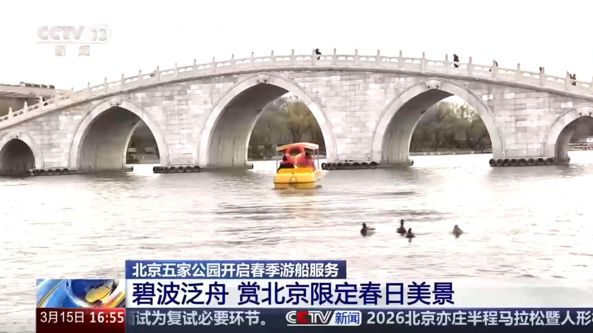 北京五家公園開啟春季游船服務(wù),碧波泛舟,賞北京限定春日美景。