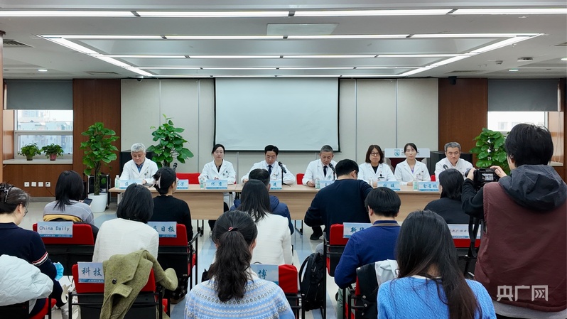 同仁醫(yī)院相關(guān)負(fù)責(zé)人介紹花粉過敏季應(yīng)對(duì)情況(央廣網(wǎng)記者 朱冠安 攝)