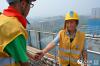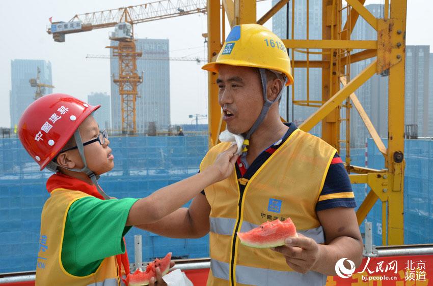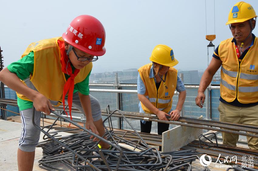 李帥恒和父母一起綁扎鋼筋,體驗(yàn)父母工作的辛苦。人民網(wǎng)尹星云 攝 人民網(wǎng)北京7月17日電(尹星云)昨天,來(lái)自中建二局一公司全國(guó)各地的留守農(nóng)民工子女來(lái)到北京亦莊某工地,見到了他們久別的父母,體驗(yàn)了父母勞動(dòng)的辛苦。 孩子們首先來(lái)到工地的項(xiàng)目安全體驗(yàn)區(qū),接受安全教育。其中的高處墜落、物體打擊、觸電體驗(yàn)等引起了孩子們濃厚興趣。隨后,孩子們來(lái)到施工現(xiàn)場(chǎng),體驗(yàn)父母勞動(dòng)場(chǎng)景。在鋼筋綁扎工作面,來(lái)自河南的13歲留守兒童李帥恒看到父母在高溫中綁扎鋼筋,主動(dòng)遞上了西瓜,并體驗(yàn)了父母綁扎鋼筋的工作!耙呀(jīng)有半年沒有見到孩子了,今天能在工地見到孩子有點(diǎn)意外驚喜!备赣H李國(guó)勝有點(diǎn)激動(dòng),而李帥恒看到父母又熱又累,也很心疼他們,他告訴記者,以后一定要繼續(xù)好好學(xué)習(xí),用實(shí)際行動(dòng)報(bào)答父母。 和李帥恒一樣,其他孩子也為在高溫中工作的父母送上了西瓜,并體驗(yàn)父母的辛勞。活動(dòng)中,來(lái)自貴州山區(qū)的15歲留守兒童小倩朗讀了給爸爸媽媽的一封信。信中說(shuō)讓父母不要再擔(dān)心她和爺爺奶奶的生活,現(xiàn)在老家變化特別大,國(guó)家扶貧為村里修通了公路,建起了茶園,校車都通到了村里。她還貼心地告訴父母在工地一定要注意安全。 接下來(lái),孩子們還將在中建二局一公司叔叔阿姨們的陪同下參觀天安門、人民大會(huì)堂、觀看升旗儀,游覽京城名勝古跡,接受愛國(guó)教育。 據(jù)了解,近年來(lái)中建二局一公司積極踐行社會(huì)責(zé)任,主動(dòng)關(guān)心關(guān)愛農(nóng)民工及其子女,已經(jīng)連續(xù)第七年開展此項(xiàng)“親情呼喚安康活動(dòng)”,使近300個(gè)農(nóng)民工家庭實(shí)現(xiàn)了團(tuán)圓夢(mèng),同時(shí),此次活動(dòng)也是全國(guó)總工會(huì)主辦的“感恩祖國(guó),擁抱未來(lái)”2017年陽(yáng)光少年成長(zhǎng)營(yíng)的一部分。 -