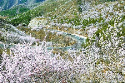 近日,氣溫回升,北京山區(qū)的山桃花、山杏花進(jìn)入盛放期,漫山花海,美不勝收。