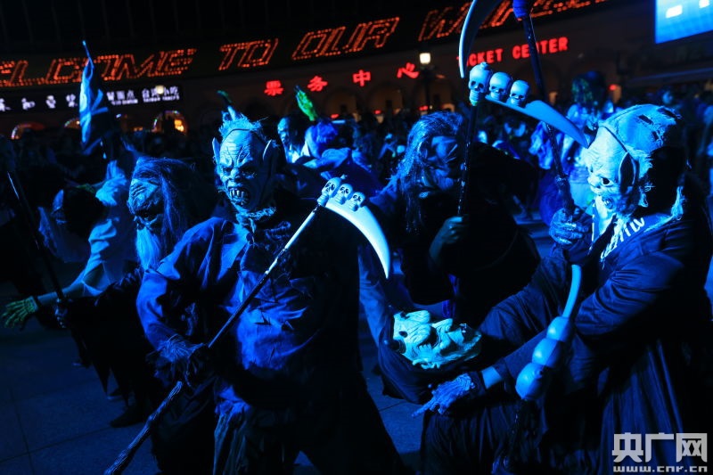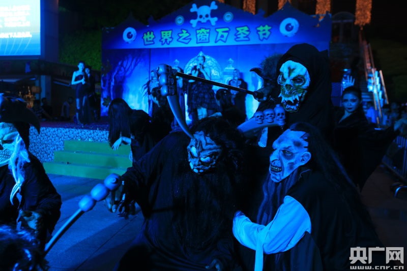 央廣網(wǎng)深圳10月16日消息(記者于揚(yáng))10月14日晚,深圳世界之窗前廣場(chǎng)人潮攢動(dòng),光影魅惑,2016世界之窗萬圣節(jié)開幕式,魔幻上映,為期一個(gè)月的萬圣狂歡拉開大幕。開場(chǎng)舞“激情夜驚魂”在音樂響起一刻,瞬時(shí)聚焦全場(chǎng)目光。妝容妖嬈美艷的“異鬼”空降舞臺(tái),大方秀出“鬼國(guó)”奇舞。伴隨著空靈幽魅的音樂,魔都魅影輕盈上演,現(xiàn)場(chǎng)氣氛一時(shí)被渲染得詭譎莫測(cè)……緊接著,激揚(yáng)亢奮的節(jié)奏響起,鬼國(guó)方陣出列,踩著節(jié)拍,一場(chǎng)百鬼巡城大狂歡舞蹈秀歡快上演,詭密氛圍一掃而空,眾人沉浸在“鬼兵”精彩的舞姿中……