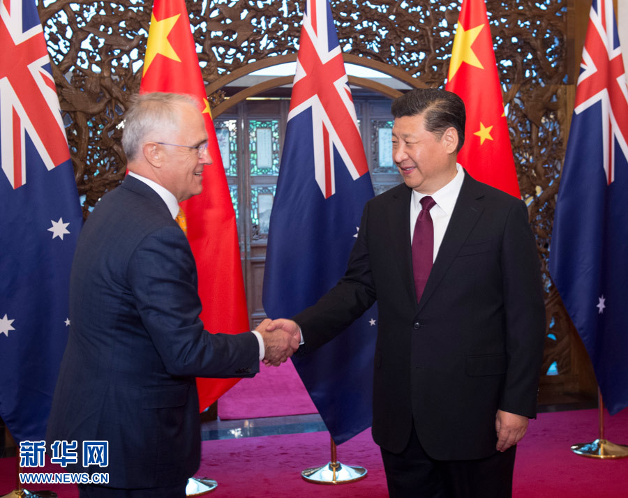 習近平指出,當前,中澳關系保持積極發(fā)展勢頭,兩國各領域交流合作日益密切。中澳全面戰(zhàn)略伙伴關系具有強勁活力,雙方要把握兩國關系發(fā)展正確方向,尊重彼此核心利益和重大關切,確保中澳關系持續(xù)健康穩(wěn)定發(fā)展。希望雙方做好中方“一帶一路”倡議同澳方“北部大開發(fā)”計劃、中國創(chuàng)新驅動發(fā)展戰(zhàn)略同澳方“國家創(chuàng)新與科學議程”的對接,實施好中澳自由貿易協(xié)定,探討開展更多務實合作項目,推進司法執(zhí)法、防務等領域交流合作。