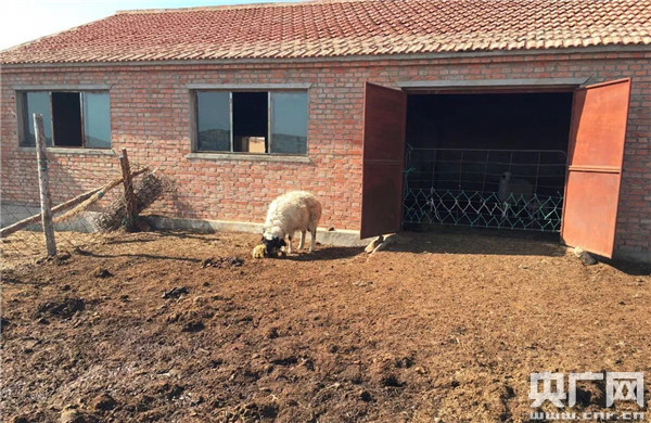 其木格家的棚圈,一只小羊羔剛剛出生 記者寶音攝