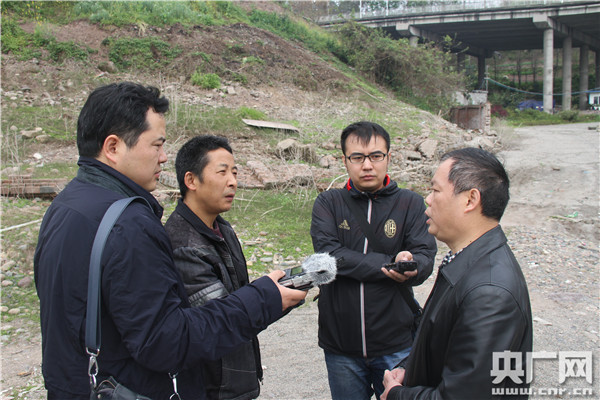 記者采訪萬(wàn)州區(qū)環(huán)衛(wèi)處副主任陳渝 (央廣網(wǎng)記者陳鵬 攝)
