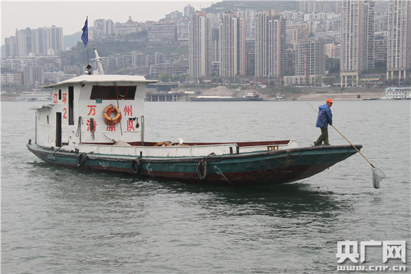 重慶萬(wàn)州清漂船(央廣網(wǎng)記者遲嵩 攝)