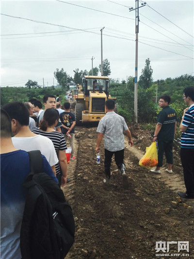 昨天,徒步向南王莊村走的時(shí)候,記者看見很多挖掘機(jī)和推土機(jī),大卡車等機(jī)械設(shè)備正在緊張的搶修這27處被沖毀的道路,據(jù)邯鄲市交通局的人說,預(yù)計(jì)今天道路將全部搶修完畢。