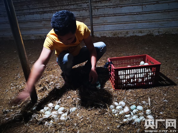 一大早薛風(fēng)燕就起床來撿鴨蛋(中央廣播電視總臺央廣記者 朱永 攝)