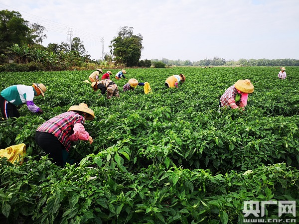 以前這里是荒地,現(xiàn)在種上了泡椒,每周采摘一次(中央廣播電視總臺央廣記者 朱永 攝)