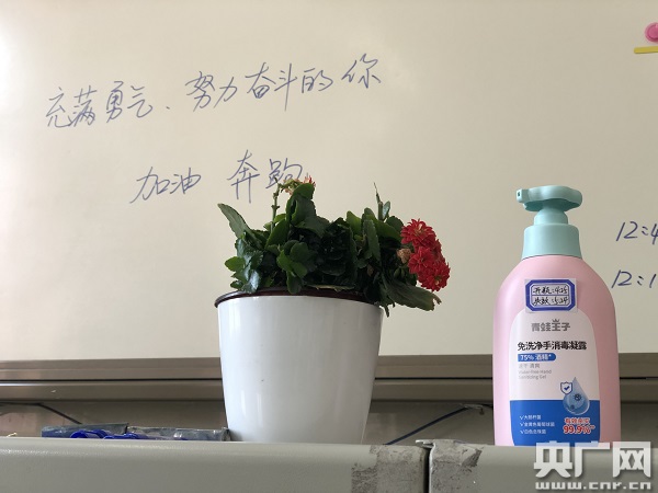 教室里新增了洗手液(中央廣播電視總臺央廣記者 白杰戈 攝)