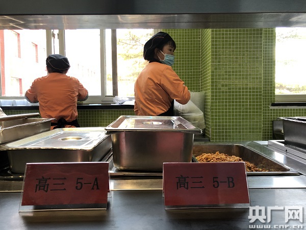 食堂工作人員在備餐(中央廣播電視總臺央廣記者 白杰戈 攝)