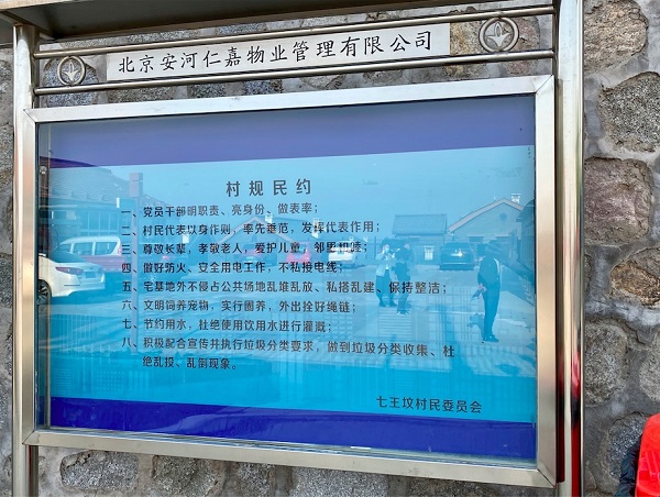 為了提高村民的環(huán)保意識(shí),落實(shí)北京市的垃圾分類要求,4月份,村里重新修訂了《七王墳村村規(guī)民約》(簡(jiǎn)稱“村規(guī)民約”),將“做到垃圾分類收集、杜絕亂投、亂倒現(xiàn)象”納入其中。七王墳村黨支部書記王棟表示:“這個(gè)事為什么會(huì)專門寫進(jìn)村規(guī)民約?因?yàn)楝F(xiàn)在不管是在農(nóng)村還是城市,垃圾都是個(gè)大問題,垃圾的量越來越大,我們?cè)趶V泛征求意見后,最終重新修訂了村規(guī)民約!