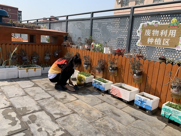 二里莊社區(qū)位于北京市海淀區(qū)的學(xué)院路街道,3月份開始,社區(qū)中央廣場(chǎng)上多出了一個(gè)小花園,這個(gè)小花園內(nèi)的花盆、裝飾物等都是用小區(qū)居民廢棄的垃圾做成的。二里莊社區(qū)黨委書記魏立告訴記者,搭建這樣一個(gè)小花園主要是為了鼓勵(lì)社區(qū)的居民更加積極主動(dòng)地進(jìn)行垃圾分類。她說:“用這種方式肯定不能消納社區(qū)的所有廚余垃圾、廢舊垃圾。但是能用這種方式引導(dǎo)居民,讓居民覺得垃圾有地兒去了,廢物可以利用起來了。”