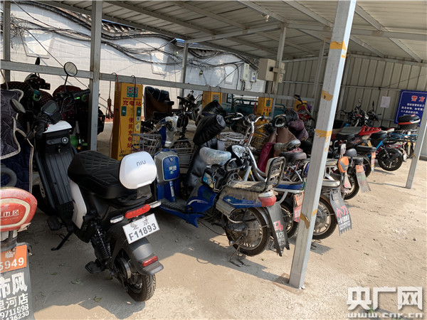 十八里店鄉(xiāng)內(nèi)電動(dòng)車充電站(中央廣播電視總臺(tái)央廣記者 錢成 攝)