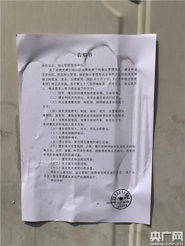 居民家門口貼的告知書(中央廣播電視總臺(tái)央廣記者 錢成 攝)