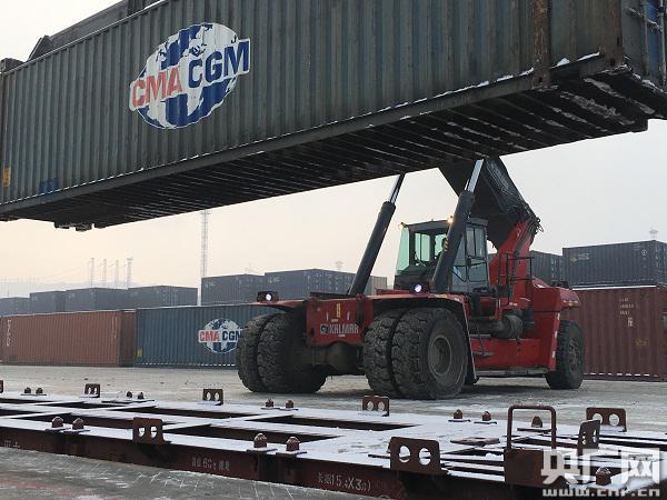 向西行國(guó)際班列吊裝貨物,準(zhǔn)備出發(fā)!