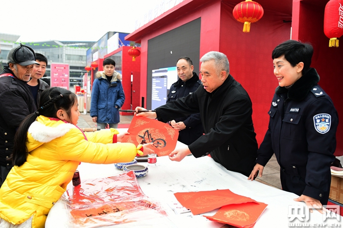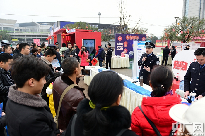央廣網重慶1月31日消息(記者陳鵬)還有幾天就要過年了,為給旅客朋友們保駕護航,30日上午,重慶火車北站南廣場“夢想驛站”攜重慶警方,結合春運特點,通過小知識有獎問答、現(xiàn)場視頻宣講、發(fā)放宣傳資料等方式,開展煙花爆竹禁放宣傳,為往來旅客送上防范電信詐騙、非法集資、毒品犯罪、盜、扒、騙以及交通安全防范常識。同時,公安文聯(lián)的藝術家們還在現(xiàn)場作畫、寫春聯(lián)和“!弊,為大家送上新春祝福。