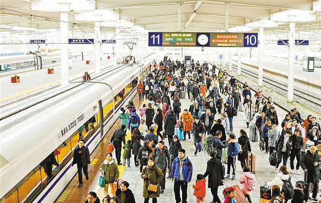 當(dāng)日,旅客在重慶北站站臺有序上下車。重慶主城區(qū)火車站預(yù)計全天發(fā)送旅客超過20萬人次。