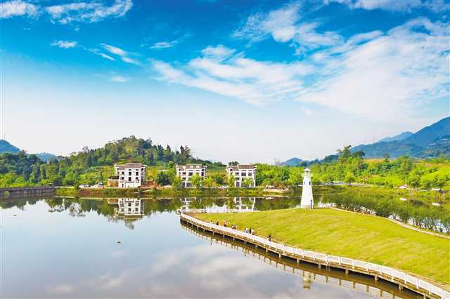 美麗鄉(xiāng)村入畫來,5月10日,游人在北碚區(qū)靜觀鎮(zhèn)素心村新建成的金子湖梅花島游玩。素心村曾獲得全國生態(tài)文化村、重慶市文明村、重慶市綠色示范村莊,通過發(fā)展鄉(xiāng)村休閑旅游增加村民收入。目前,15個涉農(nóng)鎮(zhèn)街均已建立休閑農(nóng)業(yè)示范點,走出了一條依托鄉(xiāng)村、服務城市、三產(chǎn)融合發(fā)展的新路徑。