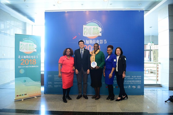 4月24日,北京加勒比電影節(jié)2018——北京大學(xué)生電影節(jié)特別展映活動開幕式在北京師范大學(xué)舉辦。牙買加駐中國大使館大使Antonia Hugh先生、巴哈馬駐中國大使館大使Robert Sterling Quant先生、圭亞那大使館大使Bayney Karran先生、巴巴多斯駐中國大使館特命大使Francois Jackman先生、特立尼達(dá)和多巴哥駐中國大使館代辦Ayesha Wharton女士、蘇里南駐中國大使館代辦Jerrel Moriah先生、中國聯(lián)合國教科文組織全委會周家貴副秘書長出席開幕式并觀看開幕影片!
