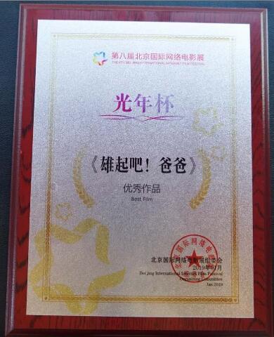 2019年1月20日,第八屆北京國際網(wǎng)絡(luò)電影節(jié)在北京圓滿落下帷幕。景甜、董璇、李小璐、王思懿、林永健、潘斌龍、蘇麗、辰亦儒、張山等演員、知名電影人、行業(yè)專家以及全國媒體匯聚一堂,見證了這一互聯(lián)網(wǎng)影視行業(yè)年度盛事。盛典上,安徽省禾谷影業(yè)有限公司、浙江漢武影業(yè)有限公司出品的《雄起吧!爸爸》憑借充滿生活氣息的現(xiàn)實(shí)題材、幽默搞笑的故事以及院線電影的質(zhì)感,從一千多部網(wǎng)絡(luò)電影中脫穎而出,榮獲優(yōu)秀作品獎!