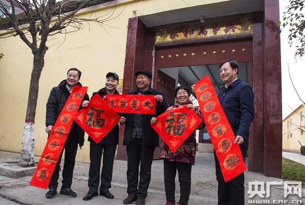 根據(jù)結(jié)尾字聲調(diào)的平仄區(qū)分出上聯(lián)和下聯(lián)后,還需注意張貼的形式。當人們面對春聯(lián)時,上聯(lián)在右首,下聯(lián)在左首。兩聯(lián)呈對稱的形式,貼在相對的位置。事實上,這多是對“框?qū)Α保ㄙN在左右門框上的春聯(lián))和“門心”(貼在左右門板上方居中位置的春聯(lián))的張貼要求。但“門心”與“框?qū)Α边略有不同。在書寫形式上,“門心”的兩聯(lián)各有兩列字,上聯(lián)是由右往左書寫,下聯(lián)是由左往右書寫,兩聯(lián)相對。張貼出去,像繁體的“門”字。比如,人們面對七言的“門心”時,春聯(lián)兩側(cè)各是四言,中間則是三言。如果稍加關注“門心”的平仄格式和書寫形式,一般不易張貼錯誤。
