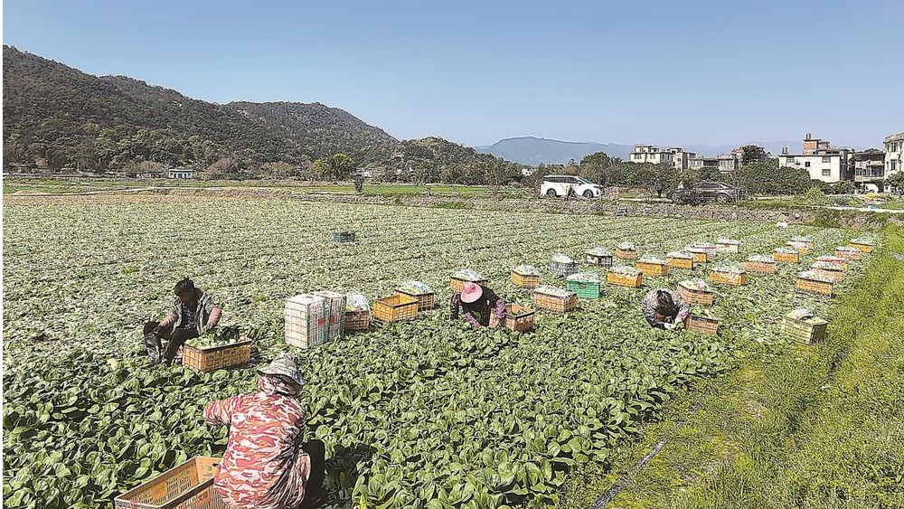 春日晴好,閩侯縣南通鎮(zhèn)瓜山村蔬菜基地內(nèi),翠綠的葉菜迎風(fēng)舒展,長(zhǎng)勢(shì)喜人。