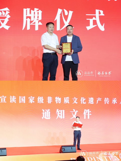 活動(dòng)現(xiàn)場(chǎng)還舉行了授牌儀式。福鼎市人大常委會(huì)主任、福鼎市茶產(chǎn)業(yè)發(fā)展領(lǐng)導(dǎo)小組常務(wù)副組長(zhǎng) 蔡梅生現(xiàn)場(chǎng)宣讀、福建品品香茶業(yè)有限公司董事長(zhǎng)林振傳入選國(guó)家級(jí)“非遺傳人”的通知文件,并授予林振傳董事長(zhǎng)“農(nóng)遺守護(hù)人”榮譽(yù)稱號(hào)。