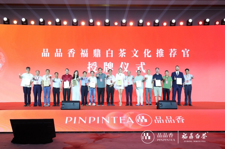 活動(dòng)現(xiàn)場(chǎng)還舉行了“品品香福鼎白茶文化推薦官”授予儀式。9位來(lái)自不同領(lǐng)域、涵蓋中外背景的茶友獲此殊榮——既有深耕茶產(chǎn)業(yè)研究的浙江大學(xué)創(chuàng)新創(chuàng)業(yè)研究院茶產(chǎn)業(yè)創(chuàng)新中心執(zhí)行主任張心忠、聚焦茶文旅融合的旅行作家雷濤,也有致力于跨文化傳播的烏克蘭籍中國(guó)通陳悟空、塞爾維亞籍中醫(yī)藥研究者蘇俐娜、法國(guó)籍主持人路明等國(guó)際友人。
