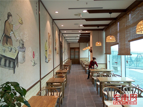 福州機(jī)場(chǎng)內(nèi),專營福州小吃的門店,裝潢充滿“三坊七巷范兒”。