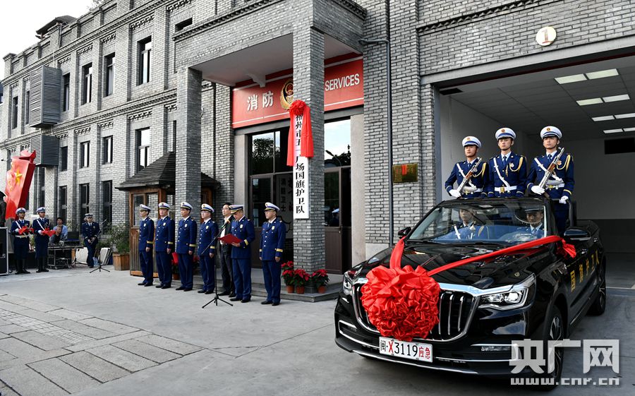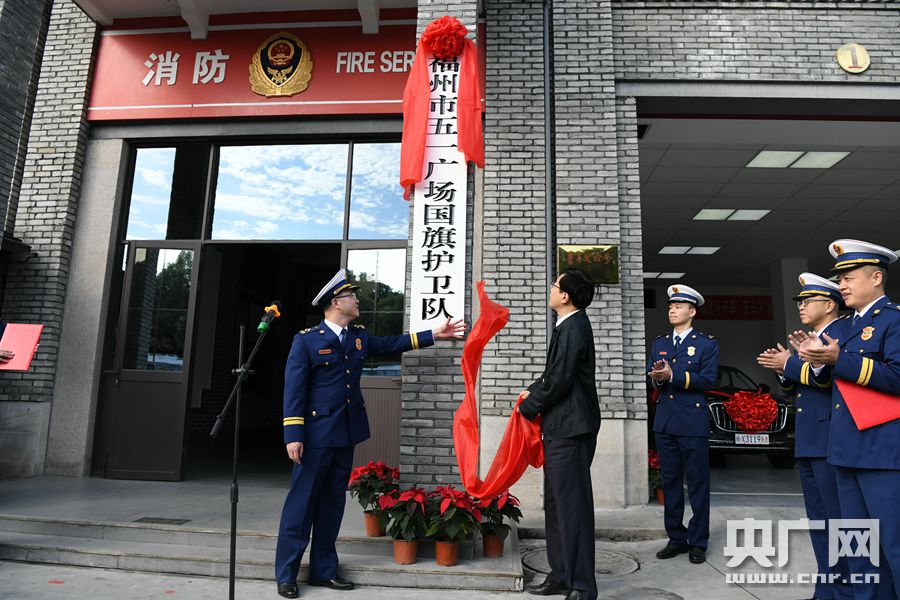 福州市五一廣場(chǎng)國(guó)旗護(hù)衛(wèi)隊(duì)7日授牌亮相(央廣網(wǎng)發(fā) 福建省消防救援總隊(duì)供圖)