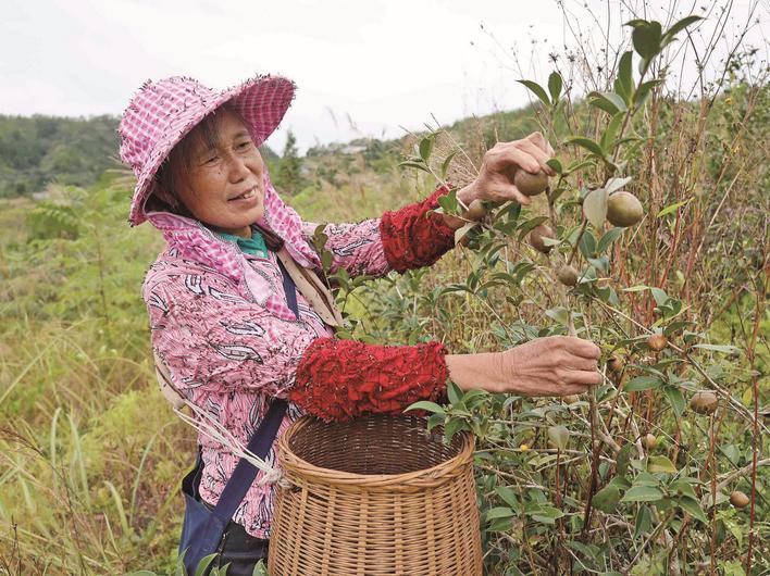 10月23日,霜降。在寧化水保生態(tài)建設(shè)有限公司的油茶種植基地里,農(nóng)戶背著竹簍、手持工具,穿梭在茶樹間,熟練地采摘著油茶果。該基地總共種植油茶600余畝,可采收油茶鮮果約4萬公斤,產(chǎn)值可達(dá)30余萬元。(寧化記者站 夏淑珍 通訊員 楊揚 彭石花 攝影報道)