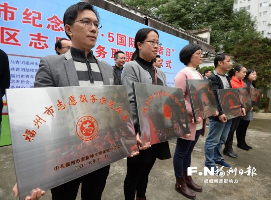 12月4日,福州市委文明辦、團(tuán)市委在鼓樓區(qū)鼓東街道中山社區(qū)聯(lián)合舉辦紀(jì)念“12·5國(guó)際志愿者日”暨社區(qū)志愿服務(wù)聯(lián)盟成立儀式活動(dòng);顒(dòng)現(xiàn)場(chǎng),主辦方為12個(gè)“福州市志愿服務(wù)示范社區(qū)”授牌,并為“綠化福州”志愿服務(wù)隊(duì)授旗。各城區(qū)志愿者代表參觀了志愿服務(wù)示范社區(qū)風(fēng)采展,觀摩“學(xué)雷鋒一條街”現(xiàn)場(chǎng)志愿服務(wù)活動(dòng)。