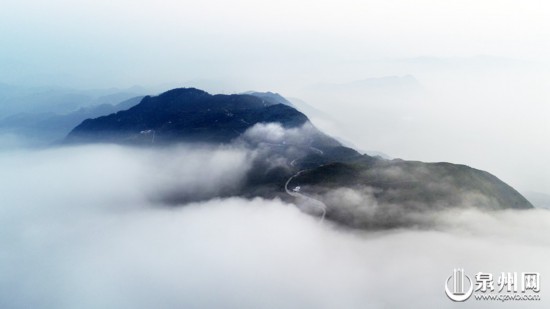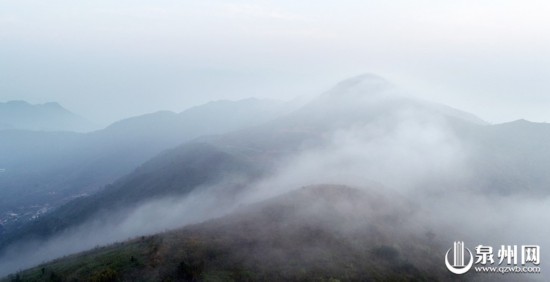 這是無人機(jī)拍攝位于安溪縣尚卿鄉(xiāng)晨霧繚繞的茶山(3月19日 攝)。當(dāng)日清晨,位于安溪縣的茶山間晨霧繚繞,層層的茶山和建筑物在縹緲的晨霧中若隱若現(xiàn),美如畫卷。(張九強(qiáng) 攝)